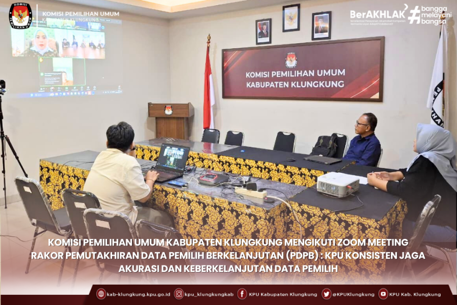 #TemanPemilih, Komisi Pemilihan Umum Kabupaten Klungkung mengikuti Zoom Meeting Rakor Pemutakhiran Data Pemilih Berkelanjutan (PDPB) bersama KPU, KPU/KIP Provinsi, KPU/KIP Kab/Kota se-Indonesia, bertempat di Ruang Rapat KPU Kabupaten Klungkung, Selasa (9/9/2025)