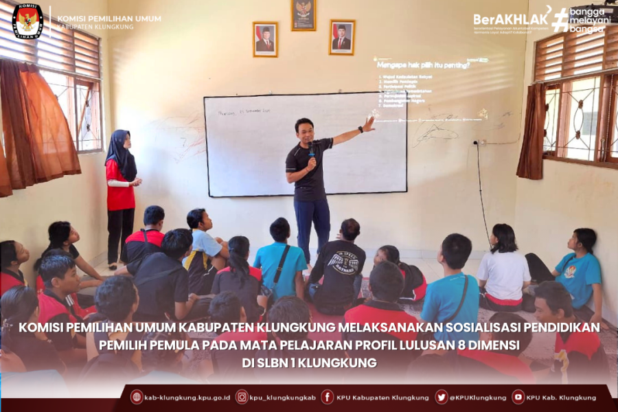 #TemanPemilih, Komisi Pemilihan Umum Kabupaten klungkung melaksanakan kegiatan sosialisasi Pendidikan Pemilih Pemula pada Mapel Profil Lulusan 8 Dimensi di SLBN 1 Klungkung, Jumat (26/9/2025)