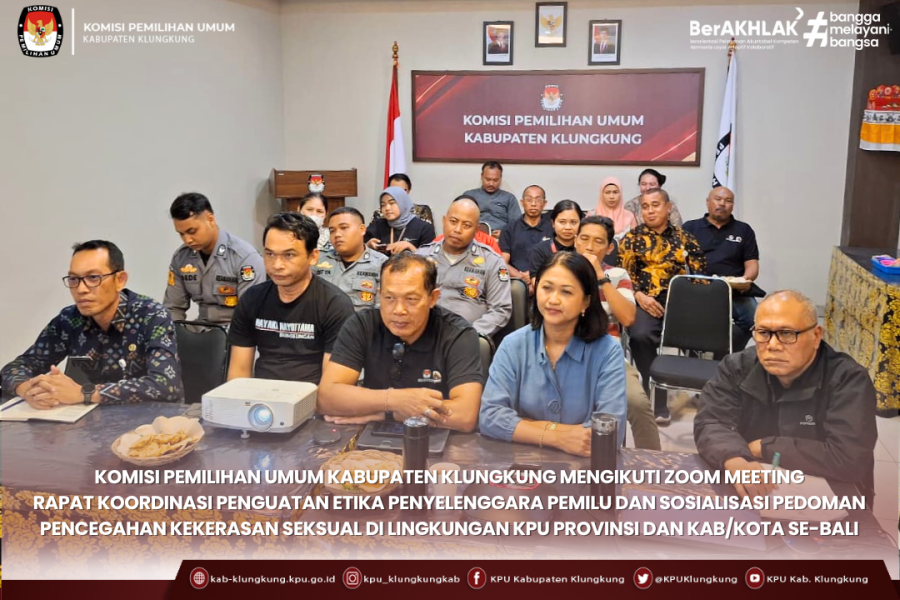 #TemanPemilih, Komisi Pemilihan Umum Kabupaten Klungkung mengikuti Kegiatan Rapat Koordinasi Penguatan Etika Penyelenggara Pemilu dan Sosialisasi Pedoman Pencegahan Kekerasan Seksual Di Lingkungan KPU Provinsi dan KPU Kabupaten/Kota se- Bali yang diselenggarakan KPU Provinsi Bali melalui media daring, Jumat (10/10/25)