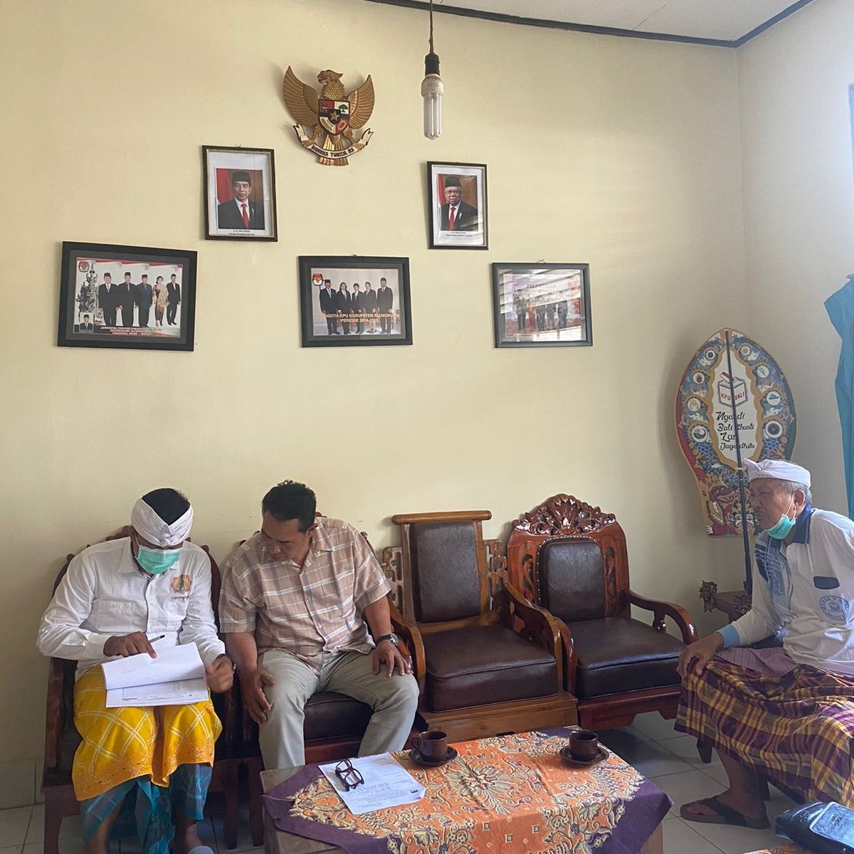 Ketua KPU Klungkung didampingi petugas pelayanan informasi publik menerima pemohon informasi I Ketut Suastika, kamis (17/3) di ruang tamu. Dalam permohonan informasi publik yang ditulis di formulir permohonan , ketut suastika mohon data hasil perolehan suara Pemilu 2019. Data yang diminta langsung bisa diberikan pada saat itu, karena data sudah bersifat public. (INTO)