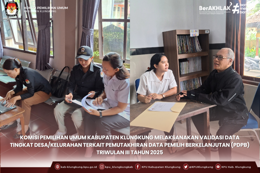 #TemanPemilih, Komisi Pemilihan Umum Kabupaten Klungkung melaksanakan kegiatan Validasi data tingkat Desa/Kelurahan di Kabupaten Klungkung terkait dengan Pemutakhiran Data Pemilih Berkelanjutan (PDPB) Triwulan III tahun 2025, Rabu (16/7/25).