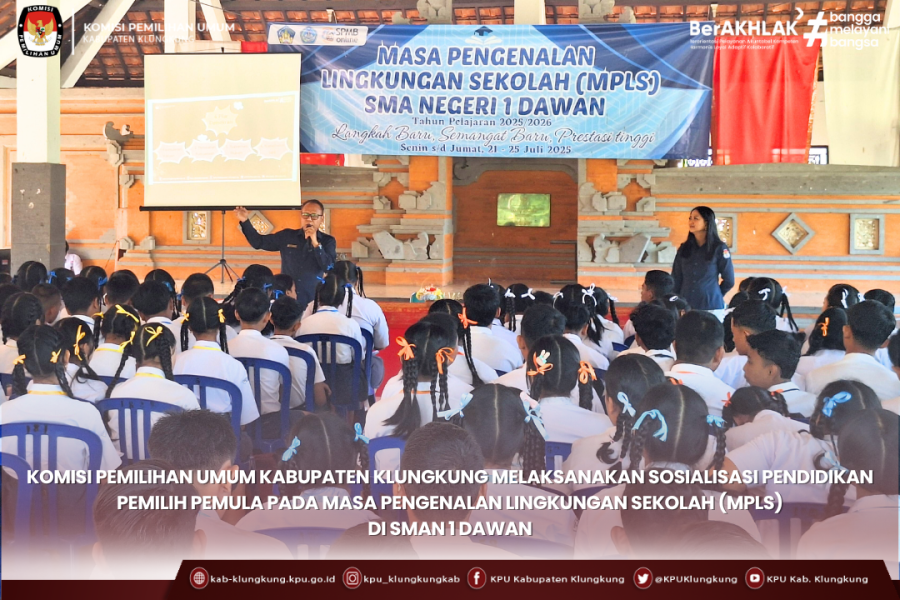 Kegiatan ini menyasar beberapa Desa/Kelurahan di dua Kecamatan di Kabupaten klungkung. Untuk Kecamatan Dawan diantaranya Desa Besan, Pikat, dan Kampung Kusamba, yang dilaksanakan oleh Anggota KPU Kabupaten Klungkung Divisi Sosialisasi Pendidikan Pemilih Partisipasi Masyarakat dan SDM, Luh Putu Inten Pradnyani didampingi Anggota Bawaslu Kabupaten Klungkung, Sang Ayu Mudiasih