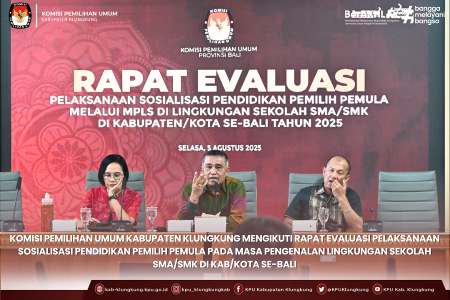 #TemanPemilih, Komisi Pemilihan Umum Kabupaten Klungkung mengikuti kegiatan Rapat Evaluasi Pelaksanaan Sosialisasi Pendidikan Pemilih Pemula melalui MPLS di Lingkungan Sekolah SMA/SMK di Kabupaten/Kota se-Bali yang diselengkagaran oleh KPU Provinsi Bali, Selasa (5/8/25)