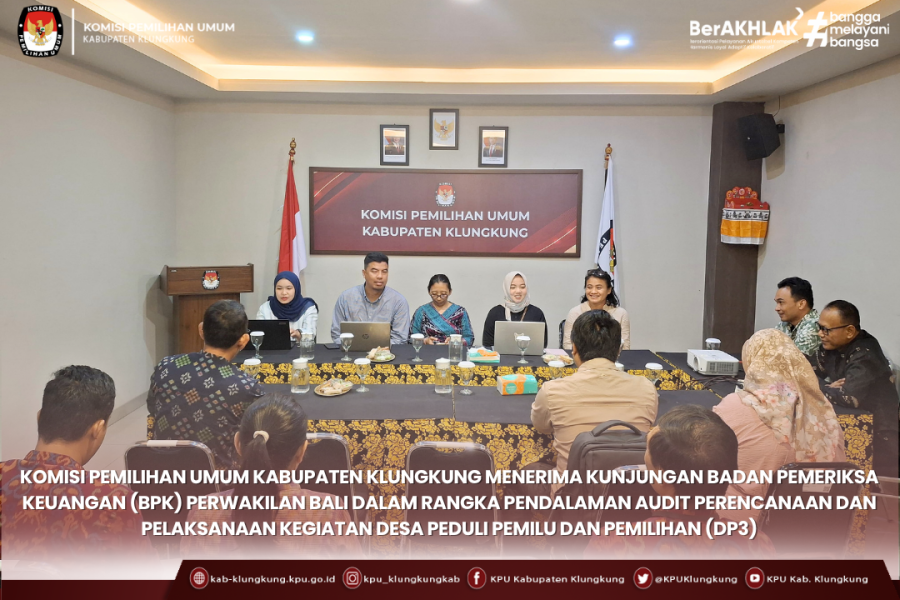 Kegiatan diikuti oleh Ketua KPU Kabupaten Klungkung, I Ketut Sudiana, Ketua Divisi Sosdiklih Parmas dan SDM, Luh Putu Inten Pradnyani.