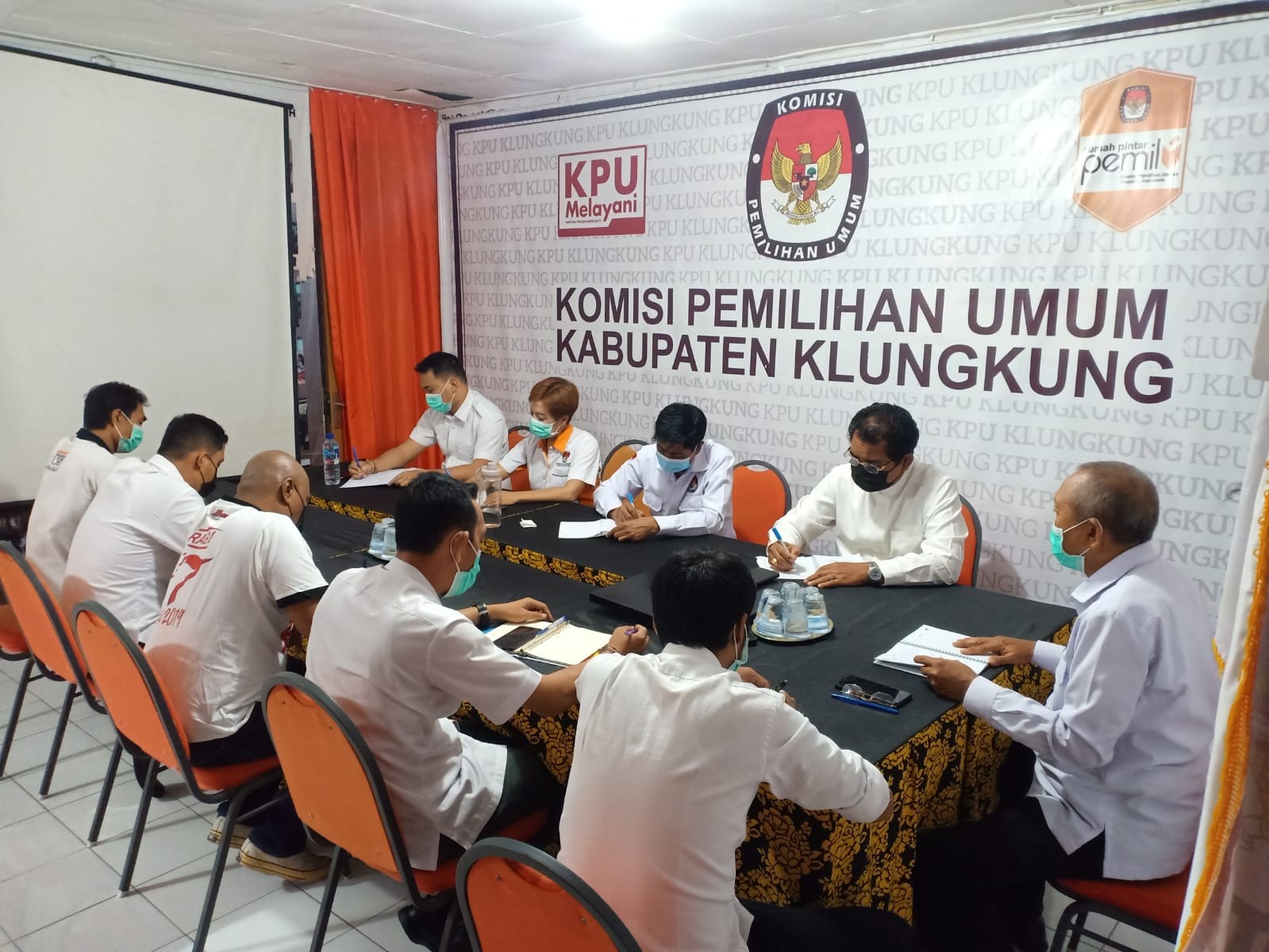 KPU Klungkung menggelar rapat pleno rutin mingguan pada hari senin (21/02) pada ruang rapat setempat. Rapat pleno dipimpin oleh Ketua KPU Klungkung I Gst Lanang Mega Saskara diikuti oleh Divisi Teknis Penyelenggaraan I Gede Suka Astreawan, Divisi Hukum dan Pengawasan I Wayan Sumerta, Divisi Perencanaan, Program dan Data Sang Ayu Mudiasih, Divisi Sosdiklih dan SDM Ida Bagus Barwata, Sekretaris Putu Gde Eka Swambara, Kasubbag Hukum, AA Gede Agung Wisnu, Kasubag Tekmas I Nyoman Twina Oka dan Kasubag Perencanaan, Program dan Data I Gede Rudy Tanaya serta notulen M. Nurseha Prasetyo.