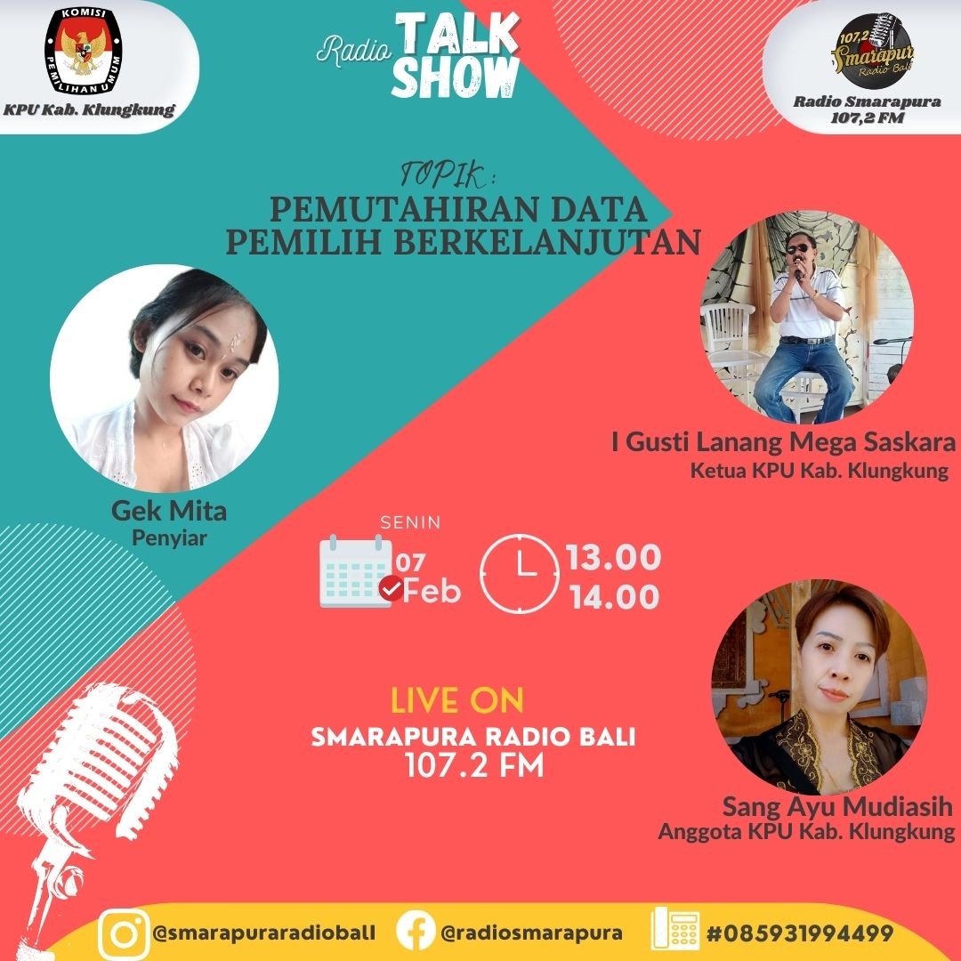 KPU Klungkung Sambangi Desa Dawan Kaler #TemanPemilih Komisi Pemilihan Umum ( KPU) Kabupaten Klungkung, Selasa, 8/2 sambangi dua lembaga yakni Disdukcapil Klungkung dan Kantor Desa Dawan Kaler, Dawan, Klungkung. Dipandu Ketua KPU setempat, I Gusti Lanang Mega Saskara, yang hadir yakni komisioner Divisi Data, Sang Ayu Mudiasih dan Gede Suka Astreawan. Tujuan kedatangan mereka tiada lain untuk berkoordinasi tentang pemutakhiran data pemilih berkelanjutan ( PDPB) persiapan rekapitilasi pada Bulan Pebruari, 2022. Di Disdukcapil mereka diterima Kabid PIAK Nengah Udayana. Sedangkan di Kantor Desa Dawan Kaler mereka diterima Sekdes setempat, Putu Diatmika. Ketua KPU bersama Suka Astreawan dan Sang Ayu Mudiasih kompak mengatakan bahwasannya KPU Klungkung selalu melakukan cek and recek terhadap perkembangan data pemilih untuk dimutakhirkan, agar pada saatnya nanti mendapatkan data pemilih yang valid untuk kepentingan pemilu dan pemilihan serentak tahun 2024." Kami terus melakukan pengecekan data pemilih bahkan sampai turun ke desa, karena kami tak ingin ada pemilih tercecer dan hilangnya hak pilih warga ", ujar Ketua KPU diamini Suka Astreawan dan Sang Ayu Mudiasih. ( sum) #KPUMelayani @kpu_ri KPU Provinsi Bali @kpu_bali KPU Republik Indonesia