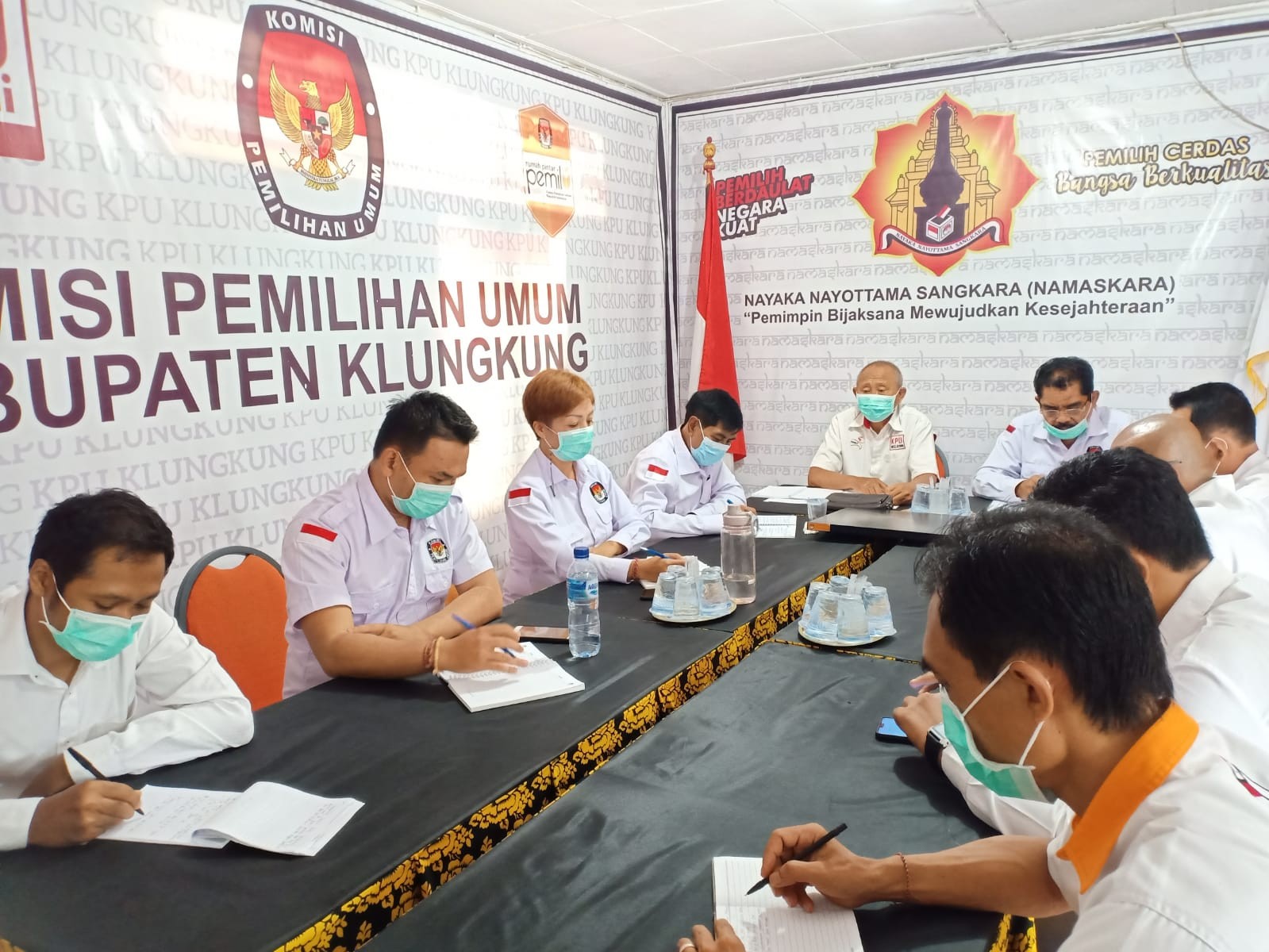 KPU Klungkung menggelar rapat pleno rutin mingguan pada hari senin (31/01) pada ruang rapat setempat. Rapat pleno dipimpin oleh Ketua KPU Klungkung I Gst Lanang Mega Saskara diikuti oleh Divisi Teknis Penyelenggaraan I Gede Suka Astreawan, Divisi Hukum dan Pengawasan I Wayan Sumerta, Divisi Perencanaan, Program dan Data Sang Ayu Mudiasih, Divisi Sokdiklih dan SDM Ida Bagus Barwata, Sekretaris Putu Gde Eka Swambara, Kasubbag Hukum, AA Gede Agung Wisnu, Kasubag Tekmas I Nyoman Twina Oka dan Kasubag Perencanaan, Program dan Data I Gede Rudy Tanaya serta notulen M. Nurseha Prasetyo. Pada rapat pleno minggu ini ditetapkan sejumlah kegiatan seperti Kegiatan sosialisasi kesekolah dan ketokoh agama hasil dari kerjasama KPU Klungkung dengan instasi terkait, koordinasi dengan pihak terkait mengenai data penduduk sebagai bahan rekapitulasi DPB bulan kedua di tahun 2022, kegiatan KPU Klungkung Berbagi Informasi melalui Media Radio, serta tindak lanjut surat audensi dengan Dinas Komunikasi Informatika Kabupaten Klungkung. Rapat pleno dilaksanakan dengan tetap menerapkan protokol kesehatan untuk pencegahan penularan Covid-19 bagi peserta rapat. (GSA)