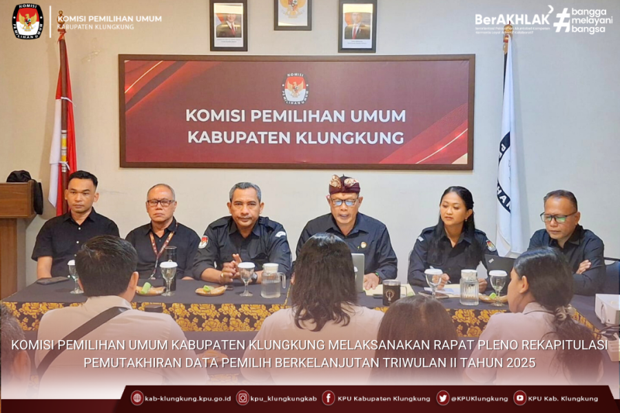 #TemanPemilih, Komisi Pemilihan Umum Kabupaten Klungkung melaksanakan Rapat Pleno Rekapitulasi Pemutahiran Data Pemilih Berkelanjutan Triwulan II Tahun 2025, bertempat di ruang rapat Kantor KPU Kabupaten Klungkung, Rabu (2/07/2025)