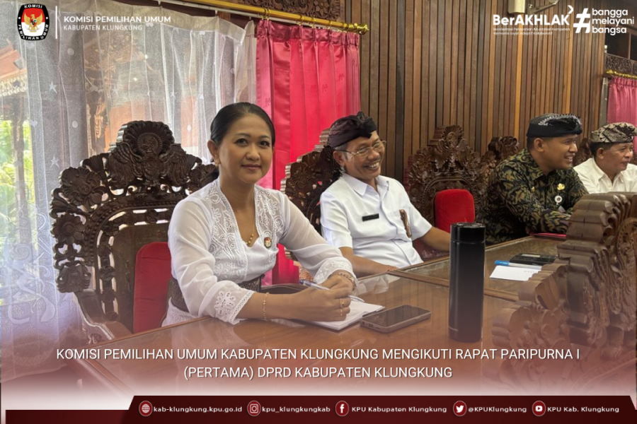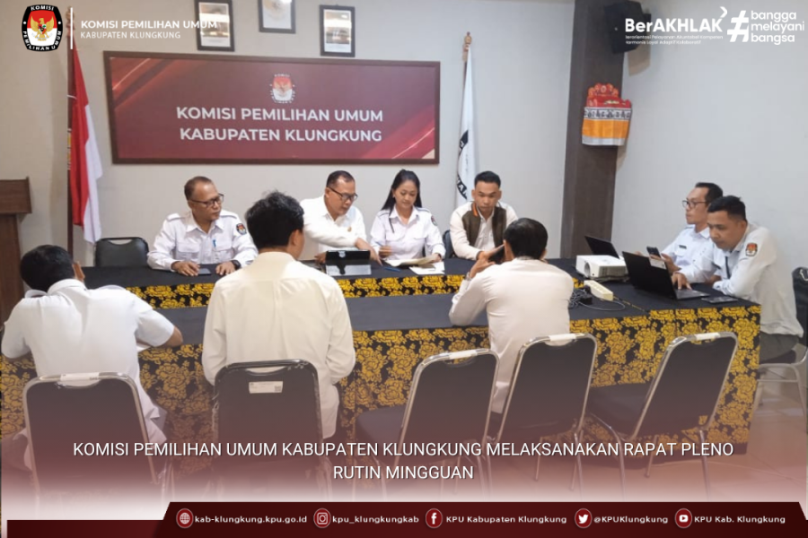 Rapat Pleno di pimpin oleh Ketua KPU Kabupaten Klungkung, I Ketut Sudiana, diikuti oleh Anggota KPU Kabupaten Klungkung, Kadiv Perencanaan, Data dan Informasi, Made Dwi Adnyana Putra, Kadiv Pendidikan Pemilih Partispasi Masyarakat dan SDM, Luh Putu Inten Pradnyani, Kadiv Teknis Penyelenggaraan I Gede Suka Astreawan, Kadiv Hukum dan Pengawasan, I Komang Artawan dan staf Perencanaan Data dan Informasi KPU Kabupaten Klungkung.