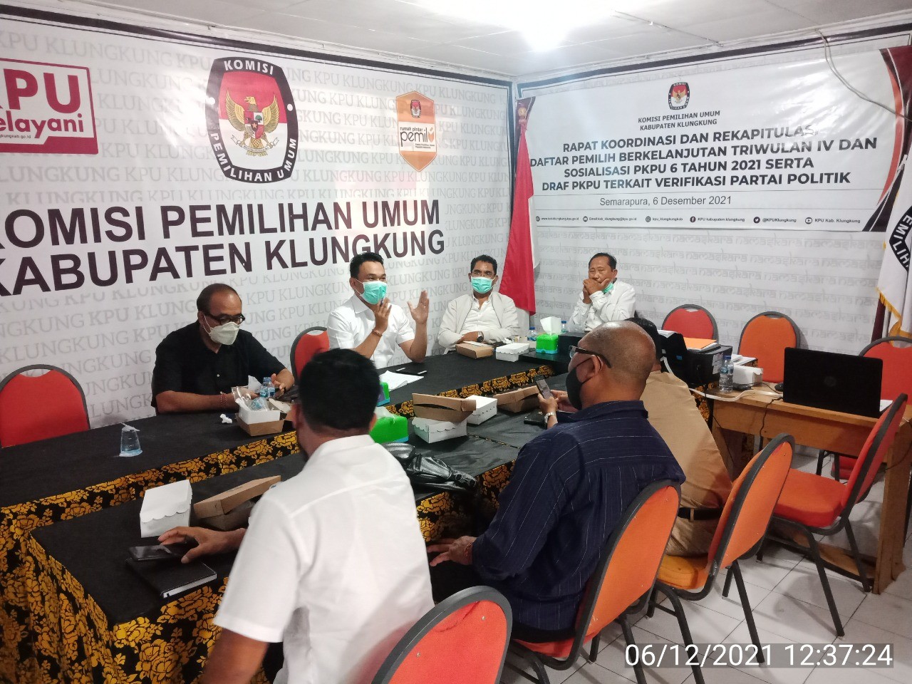 Menyongsong Pemilu Tahun 2024 KPU Klungkung Berbagi Informasi Pasca Putusan MK No 55/PUU-XVIII/2020 KPU Klungkung pada Senin, (06/12) berbagi Informasi Pasca Putusan MK No 55/PUU-XVIII/2020 kepada Stekholder dan Parpol terkait Draf PKPU mengenai Verifikasi Partai Politik. #temanpemilih Ketua KPU Klungkung Gst Lanang Mega Saskara dalam dalam kesempatan itu banyak menjelaskan tentang partai politik yang lolos Parliamentary Threshold pada Pemilu 2019 hanya dilakukan verifikasi secara administrasi sedangkan partai politik yang tidak lolos atau tidak memenuhi ketentuan Parliamentary Threshold pemilu 2019 dan Partai Politik baru dilakukan verifikasi administrasi dan virifikasi faktual sesuai Putusan MK No 55/PUU-XVIII/2020 sedangkan Divisi Teknis Penyelenggaraan I Gede Suka Astreawan menambakan tentang alur kerja dan tugas wewenang pada pendaftaran, verifikasi dan penetapan pada pemilu tahun 2024 serta mengajak parpol untuk sudah mulai mempersiapkan diri. Acara tersebut juga dihadiri oleh anggota KPU Klungkung, Bawaslu Klungkung, Polres Klungkung, Dandim 1016 Klungkung, Disdukcapil, PMDPPKB, Partai Politik serta Sekretariatan KPU Klungkung. (GSA) #kpumelayani