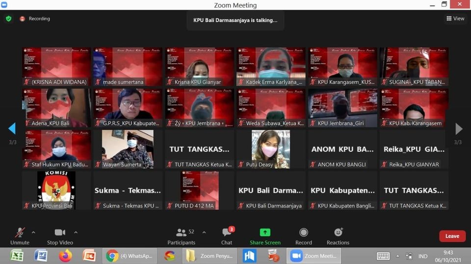 Diskusi Kita Bicara Pemilu SOP Jangan Kekang Kreatifitas Komisi Pemilihan Umum ( KPU) Provinsi Bali dalam hal ini Divisi Hukum dan Pengawasan, Rabu (6/10) mengawali kegiatan diskusi rutin berjudul " Diskusi Kita Bicara Pemilu" lewat daring. Giliran Kordinator Divisi Hukum dan Pengawasan KPU Bangli, Gede Roy P yang tampil paling awal sebagai narasumber.Roy menyajikan materi tentang standar operasional prosedur ( SOP) penyusunan rancangan keputusan ( dalam hal ini keputusan KPU kabupaten/ kota). Kegiatan itu dibuka dan ditutup Ketua KPU Bali yang diwakili, Gusti Ngurah Agung Darma Sanjaya, dengan moderator Tia dari sekretariat KPU Bali, dan AA Gede Raka Nakula sebagai dinding penangkis atas pertanyaan- pertanyaan peserta.Acara tersebut dihadiri komisioner KPU Bali, dan sekretatiat dan komisioner KPU kabupaten / kota se Bali beserta sekretariat. Gde P Roy Suparman memaparkan materinya yang meliputi dasar hukum penyusunan SOP, wewenang dan susunan serta tahapan.Dia menggunakan metode SFUT untuk menyederhanakan sop dimaksud. Dikatakam tujuan dibuat sop yakni untuk menyederhanakan dan memudahkan penyampaian petunjuk, menyeragamkan dan memperlancar pelaksanaan kegiatan, meningkatkan kerjasama antar pimpinan sampai ke stap dan memudahkan pekerjaan.Sebaliknya bila tidak melalui sop, Roy khawatir akan konsekuensinya, akan beresiko ketika sebuah keputusan disengketakan. Sedangkan AA Gede Raka Nakula, pada akhir- akhir acara tersebut memberi apresiasi dan memuji pemateri ( nara sumber)nya.Raja Nakula berharap setiap kegiatan dan disemua bidang mesti menggunakan sop.Dikatakan bekerja dengan sop sebagai cermin tingkat kapabilitas kinerja, konsistensi kerja, komunikasi dan keteraturan kerja.Selain itu akan meningkatkan kerjasama, menghindari saling menyalahkan.Namun diharapkan sop agar tidak mengekang kreatifitas tetapi agar dinamis." SOP jangan sampai mengekang kreatifitas", tegasnya seperti yang juga disampaikan Gusti Ngurah Agung Darma Sanjaya saat menutup acara tersebut. (sum)