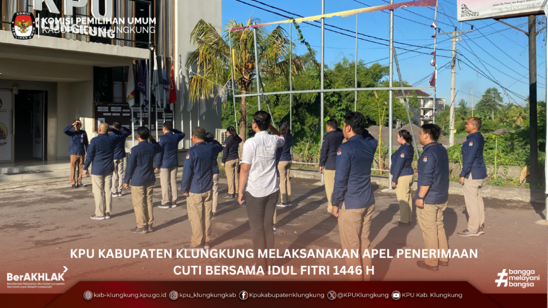 #TemanPemilih, Komisi Pemilihan Umum Kabupaten Klungkung melaksanakan Apel Pagi sekaligus apel penerimaan cuti Bersama Idul Fitri 1446 H, bertempat di halaman kantor KPU Kabupaten Klungkung, Selasa (8/4/2025)