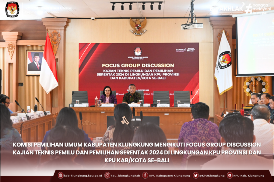 #TemanPemilih, Komisi Pemilihan Umum Kabupaten Klungkung menghadiri kegiatan Focus Group Discussion (FGD) Kajian Teknis Pemilu dan Pemilihan Serentak Tahun 2024 di Lingkungan KPU Provinsi dan KPU Kab/Kota se-Bali, bertempat di Ruang Rapat KPU Provinsi Bali, Selasa (14/10/2025)