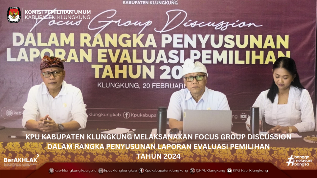 Kegiatan FGD bertujuan untuk Menyusun laporan evaluasi pemilihan tahun 2024 di Kabupaten Klungkung yang nantinya sebagai acuan dalam Pemilihan Berikutnya.