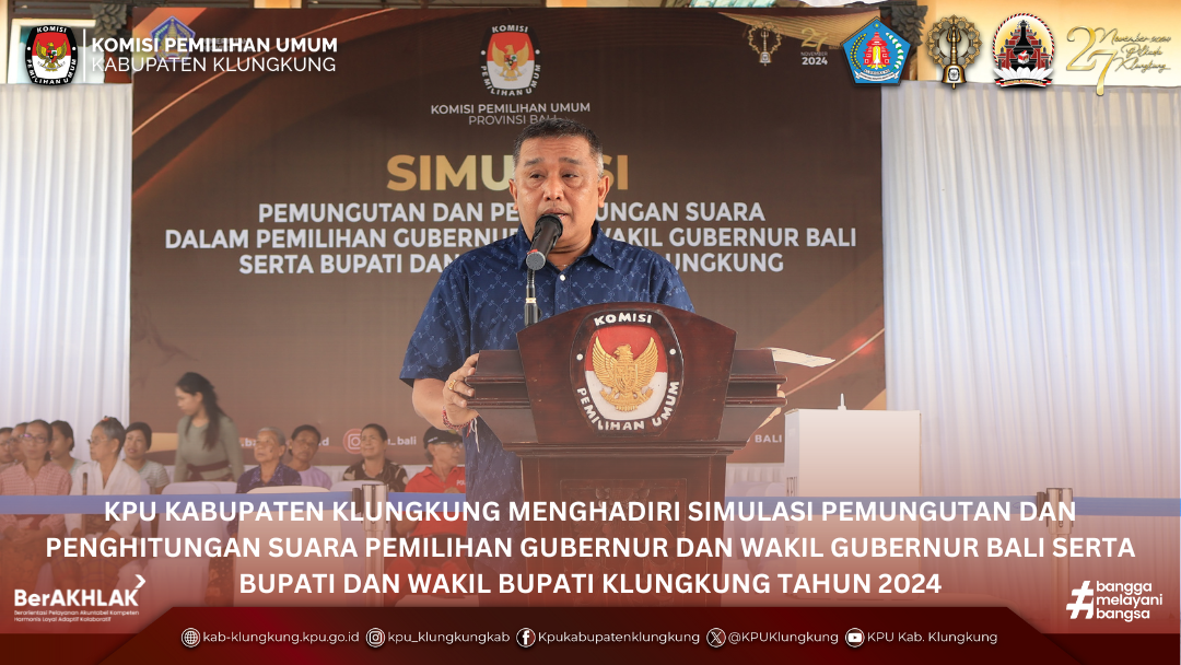 #TemanPemilih, Komisi Pemilihan Umum Kabupaten Klungkung menghadiri kegiatan Simulasi Pemungutan dan Penghitungan Suara Pemilihan Gubernur dan Wakil Gubernur Bali serta Bupati dan Wakil Bupati Klungkung Tahun 2024 yang diselenggarakan oleh KPU Provinsi Bali, bertempat di Desa Getakan, Klungkung, Sabtu (19/10).