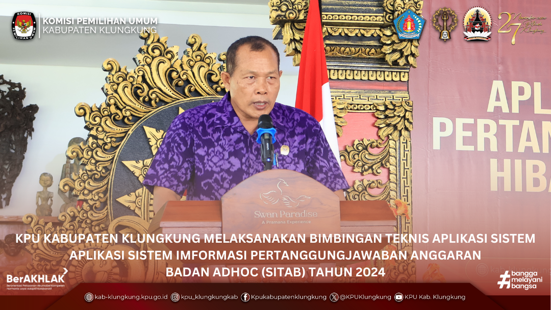 Kegiatan ini dibuka sekaligus Arahan oleh Ketua KPU Provinsi Bali, I Dewa Agung Gede Lidartawan. Kegiatan ini dihadiri oleh Ketua KPU Kabupaten Klungkung, I Ketut Sudiana, Divisi Teknis Penyelenggara, I Gede Suka Astreawan, Divisi Sosdiklih Parmas dan SDM, Luh Putu Inten Pradnyani, Divisi Hukum dan Pengawasan, I Komang Artawan, dan Divisi Perencanaan Data dan Informasi, Made Dwi Adnyana Putra, serta Sekretaris KPU Kabupaten Klungkung, I Putu Gde Eka Swambara, Kasubbag Teknis dan Hukum, I Gede Rudy Tanaya. Kegiatan ini juga dihadiri oleh Forkompinda Kabupaten Klungkung, Bawaslu Kabupaten Klungkung, LO/Penghubung Paslon Bupatoi dan Wakil Bupati Klungkung Tahun 2024, Camat Kabupaten Klungkung, serta PPK dan PPS se-Kabupaten Klungkung.