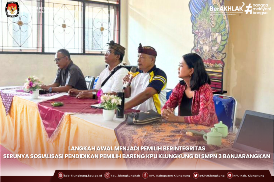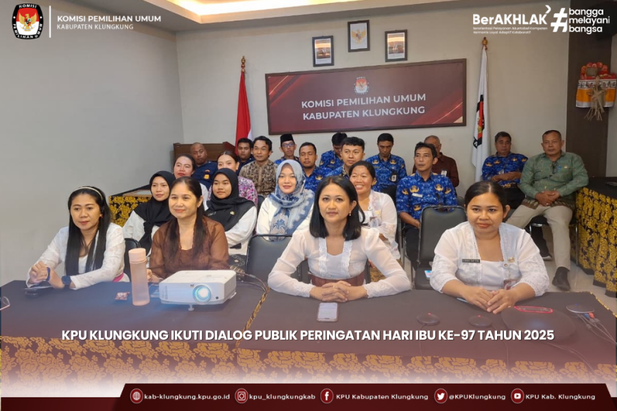 Turut hadir dalam kegiatan tersebut KPU Kab Klungkung yang dihadiri secara daring oleh Ketua KPU Kab Klungkung, I Ketut Sudiana dan Sekretaris KPU Kab Klungkung, I Putu Gde Eka Swambara. Sementara itu, Anggota KPU Kab Klungkung dan pejabat struktural mengikuti kegiatan secara luring.