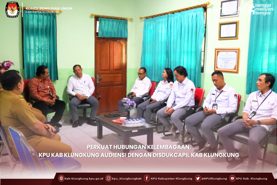 Komisi Pemilihan Umum Kabupaten Klungkung melaksanakan kegiatan audiensi ke Kantor Dinas Kependudukan dan Pencatatan Sipil Kabupaten Klungkung pada Senin, 9 Februari 2026.