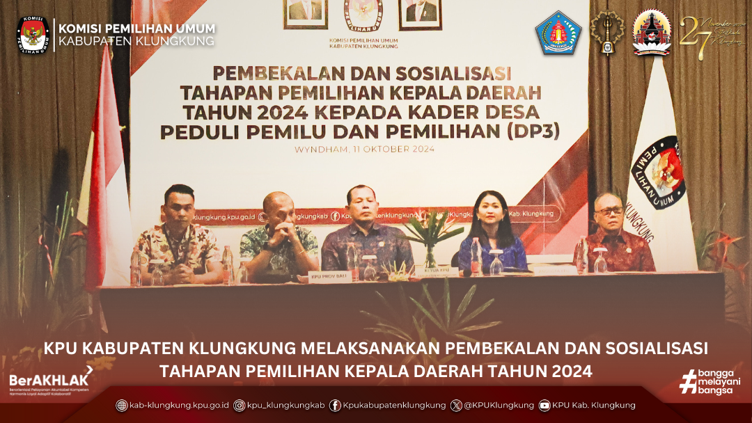 #TemanPemilih, Komisi Pemilihan Umum Kabupaten Klungkung melaksanakan kegiatan Sosialisasi Program Desa Peduli Pemilu dan Pemilihan (DP3) pada Pemilihan Gubernur dan Wakil Gubernur Bali serta Bupati dan Wakil Bupati Klungkung Tahun 2024, bertempat di Wyndham Tamansari Jivva Resort Bali, Jumat (11/10).