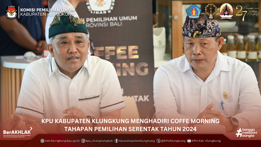 #TemanPemilih, Komisi Pemilihan Umum Kabupaten Klungkung menghadiri kegiatan Coffe Morning Tahapan Pemilihan Serentak Tahun 2024 yang diselenggarakan oleh KPU Provinsi Bali, di Dians Garden Klungkung Bali, Kamis (3/10).