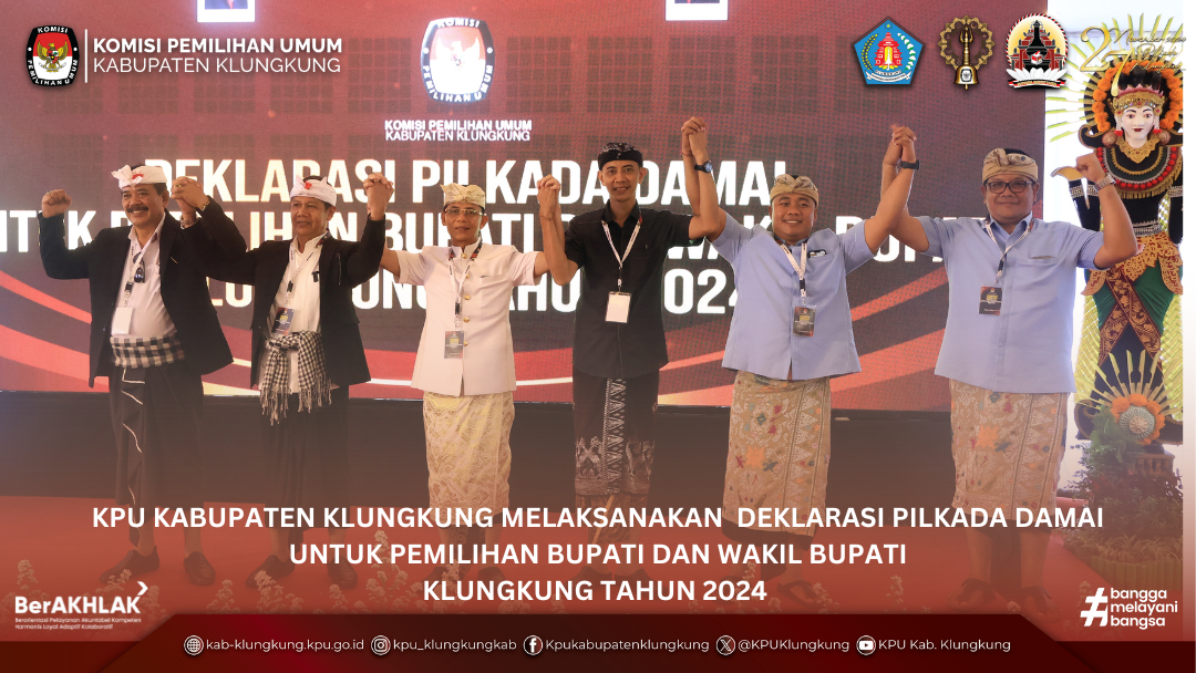 #TemanPemilih, Komisi Pemilihan Umum Kabupaten Klungkung melaksanakan Deklarasi Damai untuk Pemilihan Bupati dan Wakil Bupati Klungkung Tahun 2024, di Kantor KPU Kabupaten Klungkung, Senin (23/09).
