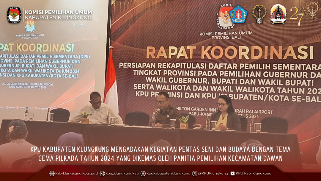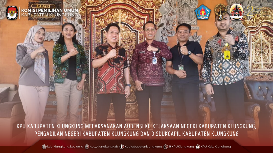 #Teman Pemilih, Komisi Pemilihan Umum Kabupaten Klungkung mengadakan kegiatan Audensi terkait Tahapan Pencalonan Pemilihan Bupati dan Wakil Bupati Klungkung Tahun 2024 dengan Kejaksaan Negeri Kabupaten Klungkung, Pengadilan Negeri Kabupaten Klungkung dan Dinas Pendudukan dan Catatan Sipil Kabupaten Klungkung, Jumat (16/8). Kegiatan ini dipimpin oleh Anggota KPU Kabupaten Klungkung, Divisi Teknis Penyelenggaraan Pemilu, I Gede Suka Astreawan, Divisi Sosialisasi Pendidikan Pemilih, Partisipasi Masyarakat dan SDM, Luh Putu Inten Pradnyani, beserta Sekretaris KPU Kabupaten Klungkung, I Putu Gde Eka Swambara, dan Kasubbag Teknis Penyelenggaraan Pemilu dan Hukum, I Gde Rudy Tanaya. Audensi bersama Kejaksaan Negeri Klungkung diterima langsung oleh Kepala Kejaksaan Negeri Klungkung. Audensi bersama Pengadilan Negeri Kabupaten Klungkung diterima langsung oleh Ketua Pengadilan Negeri Kabupaten Klungkung, A.A. Sagung Yuni Wulantrisna, S.H.. Audensi bersama Dinas Pendudukan dan Catatan Sipil Kabupaten Klungkung diterima langsung oleh Kepala Dinas Pendudukan dan Catatan Sipil Kabupaten Klungkung, Ida Bagus Jumpung Gede Oka Wedhana, SE., MM.. #KPUMelayani #PilkadaSerentak2024