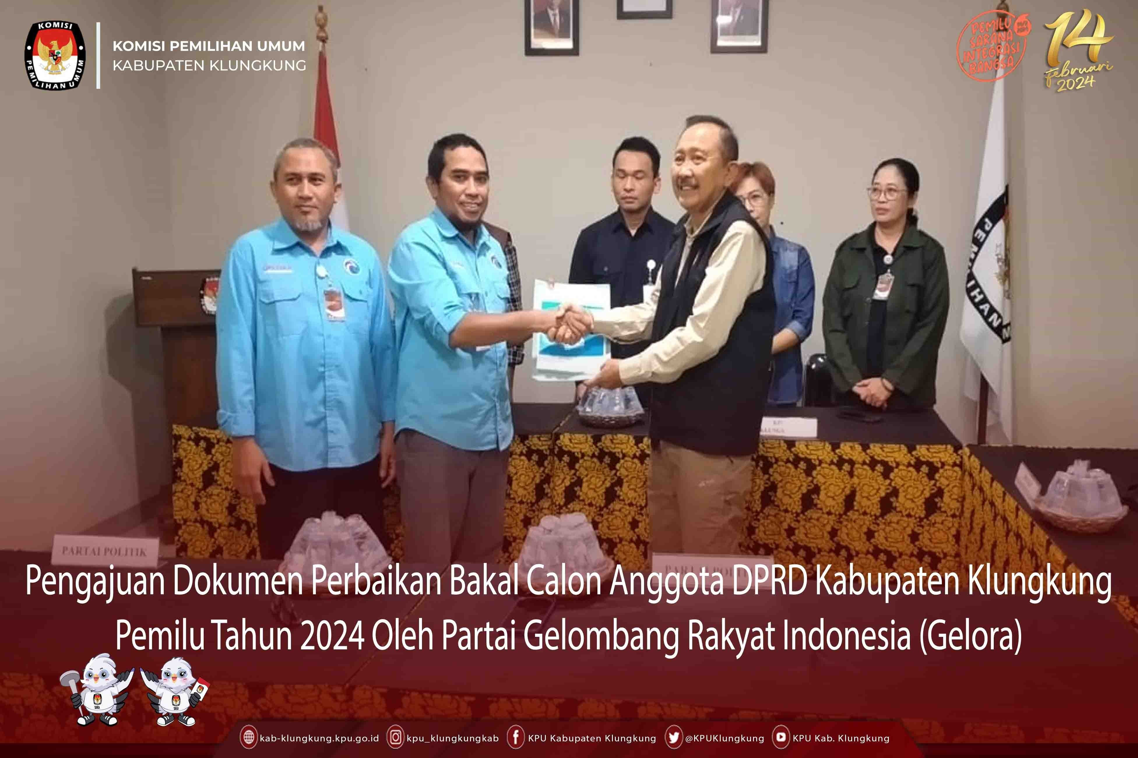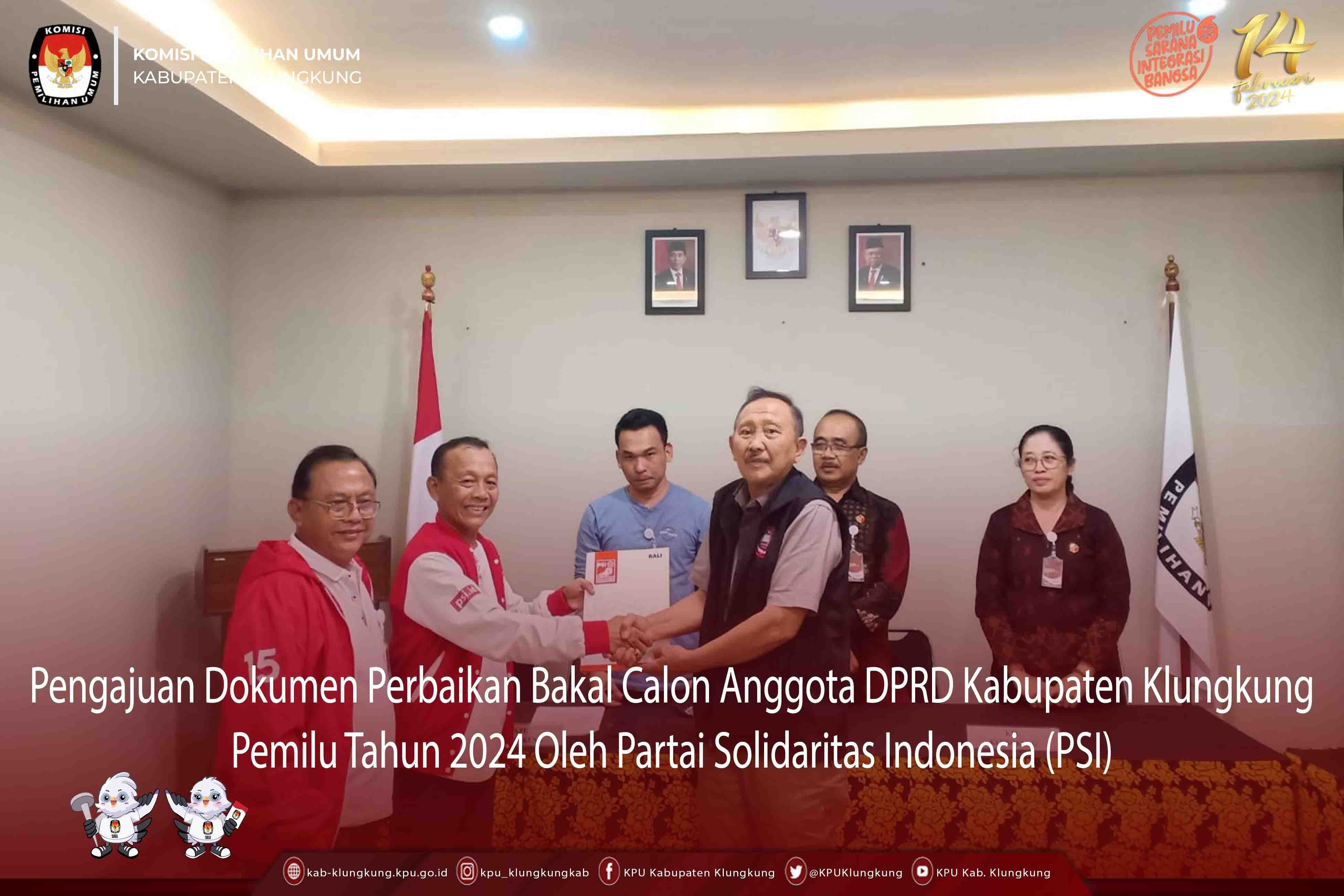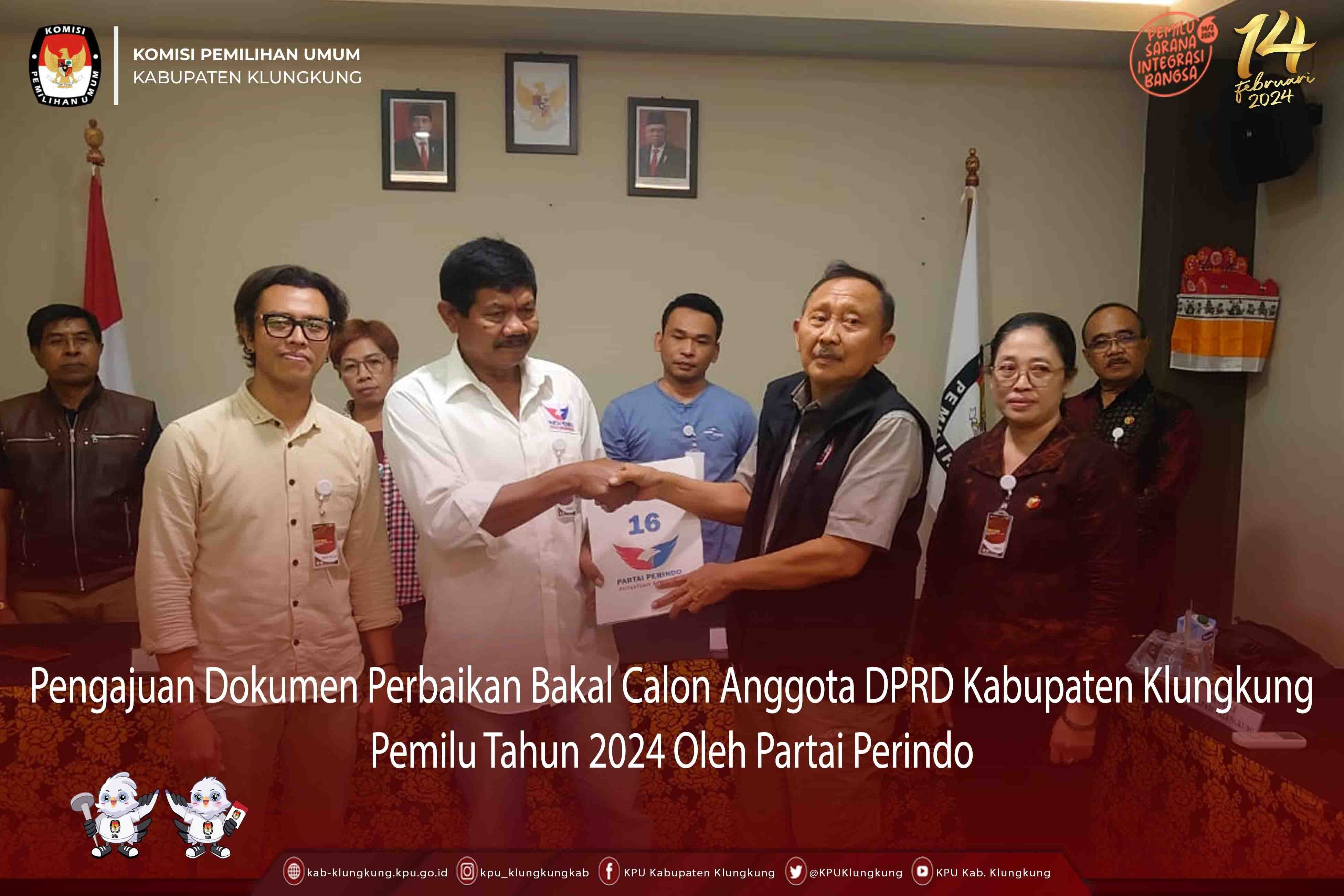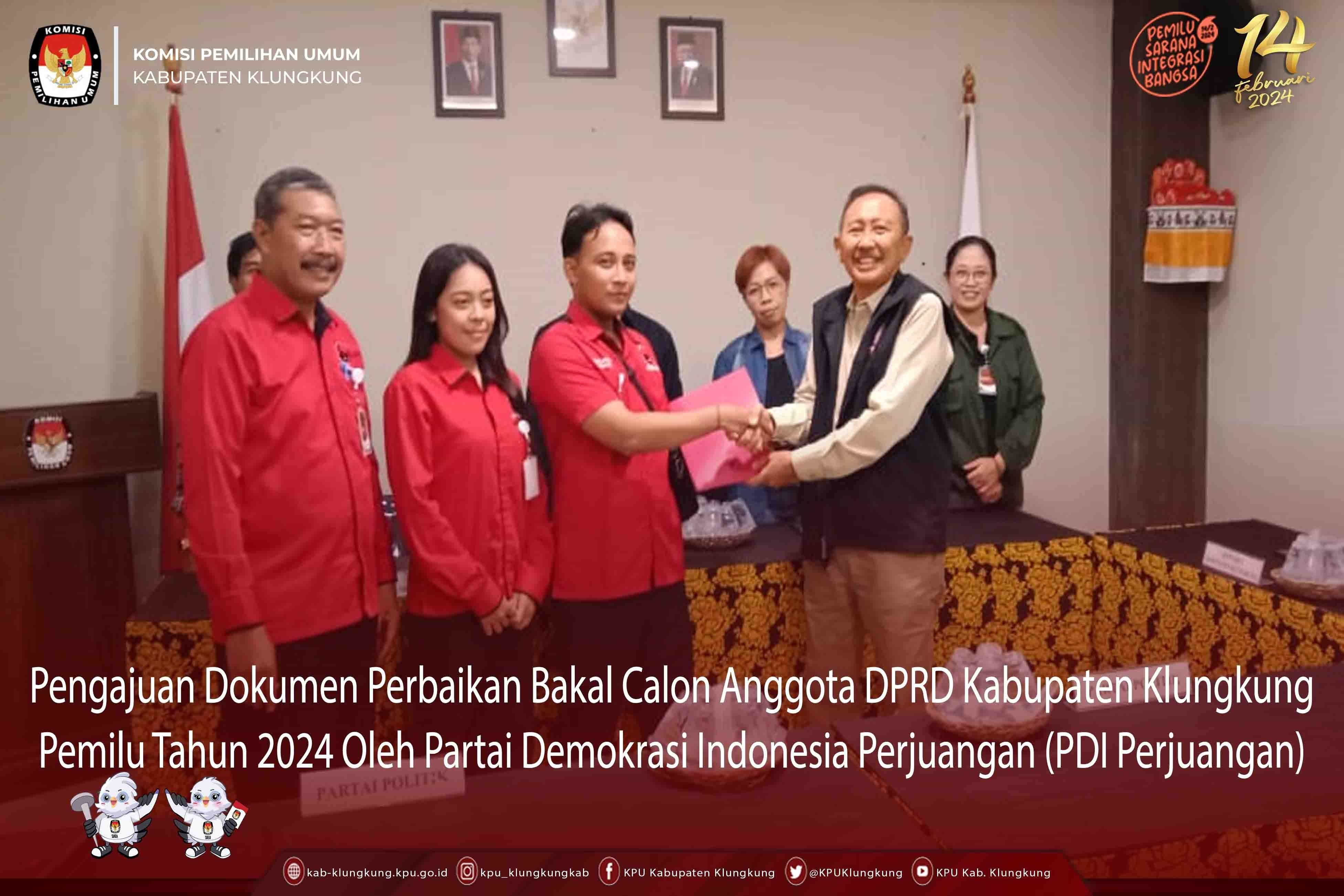 Pengajuan Dokumen Perbaikan Bakal Calon Anggota DPRD Kabupaten Klungkung Pemilu Tahun 2024 Oleh Partai Demokrasi Indonesia Perjuangan (PDI Perjuangan)