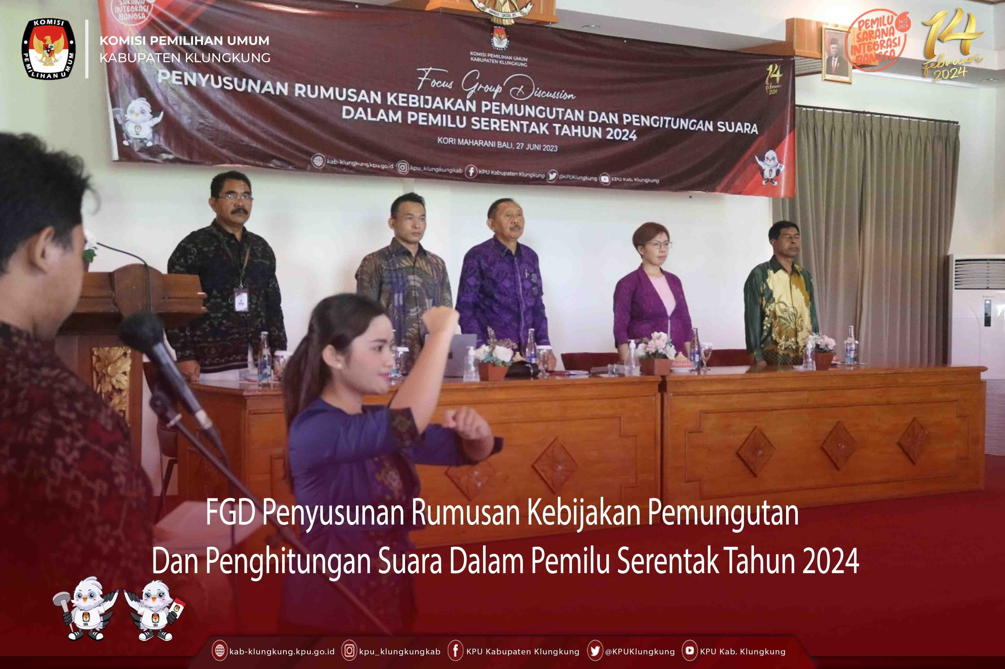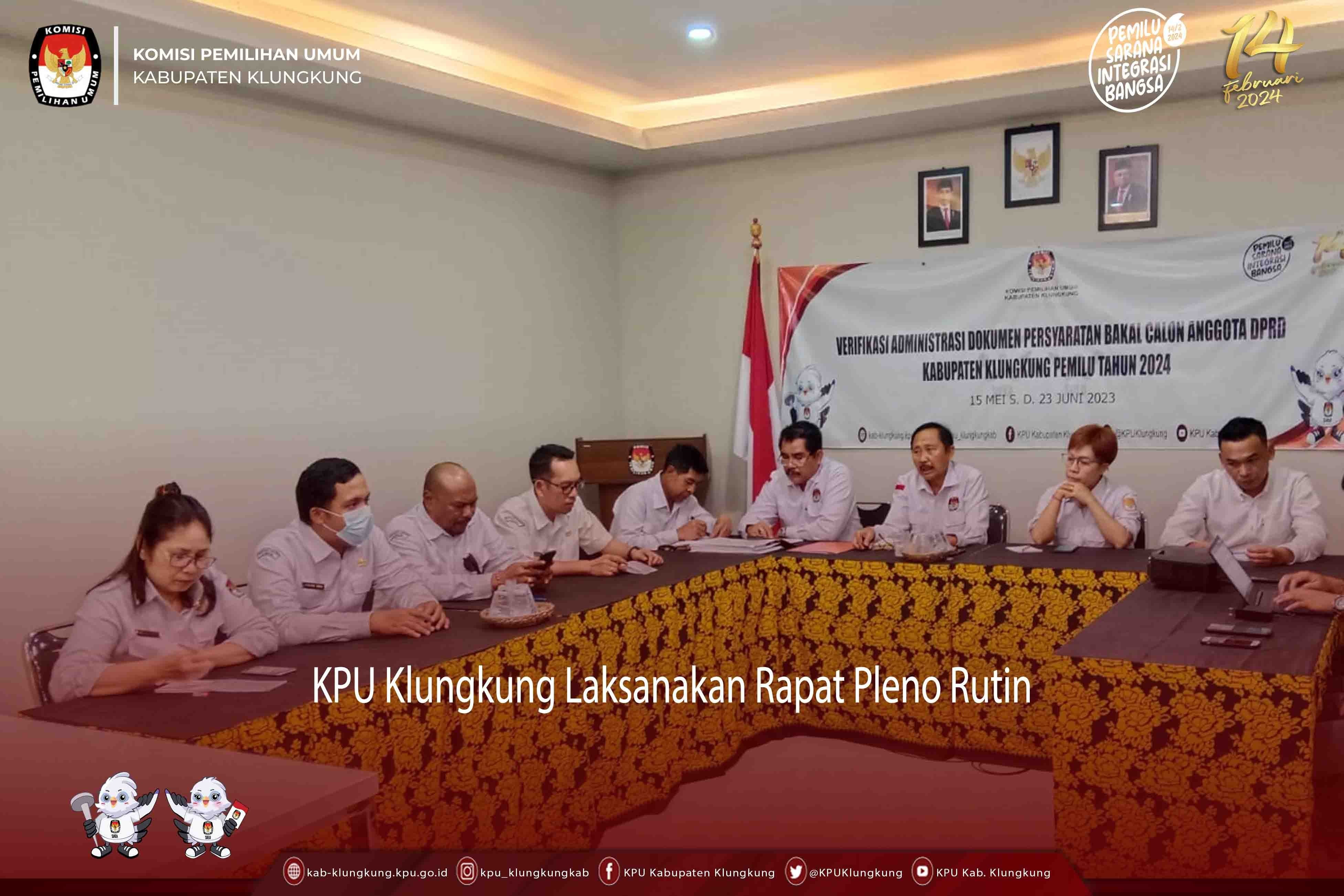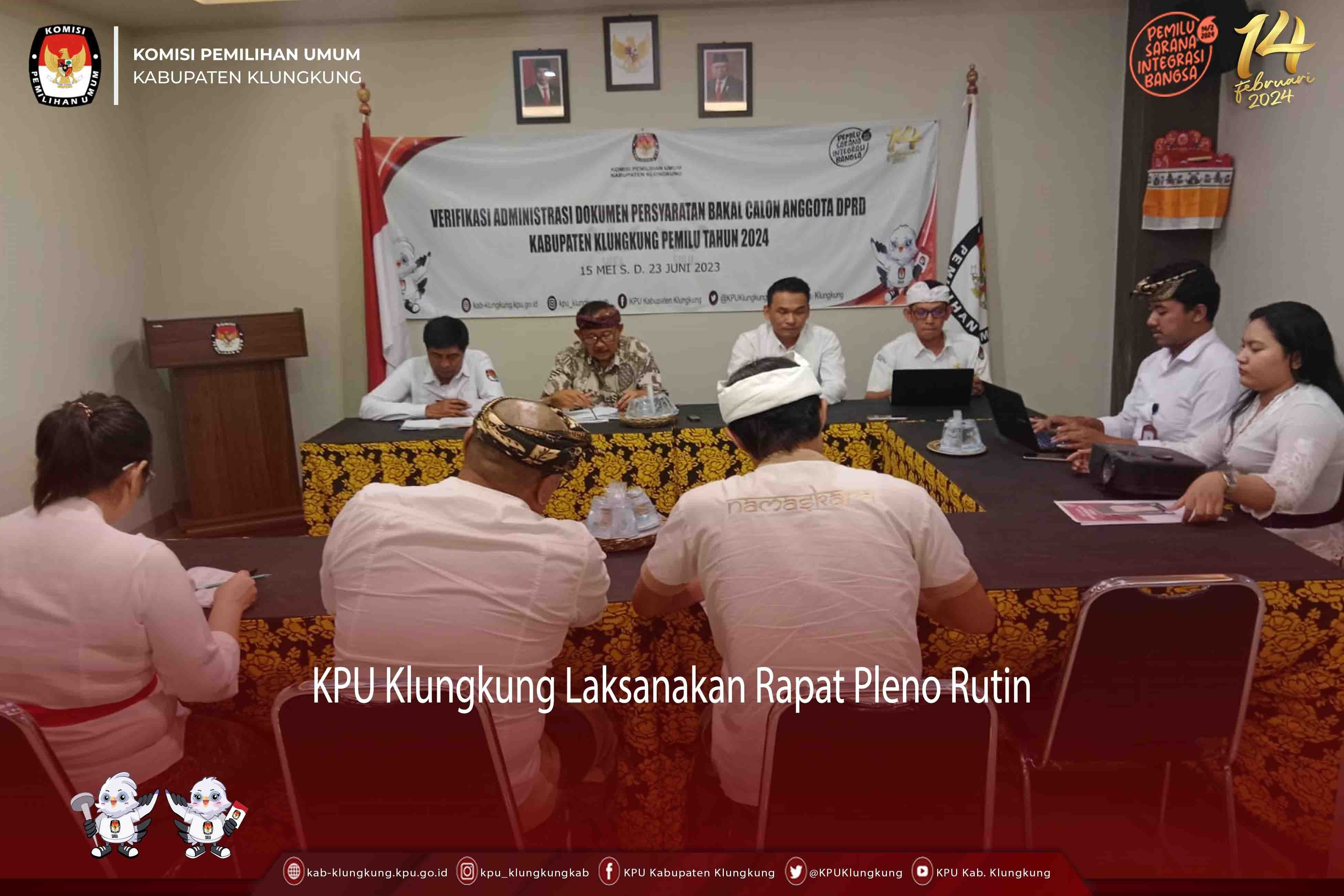 Kegiatan rakor membahas terkait catatan Hasil Verifikasi Administrasi Dokumen Persyaratan Bakal Calon Anggota DPRD Kabupaten Klungkung Pemilu Serentak Tahun 2024 Kepada Partai Politik Peserta Pemilu serta penyampaian tahapan pengajuan perbaikan dokumen persyaratan bakal calon mulai 26 Juni hingga 9 Juli 2023.