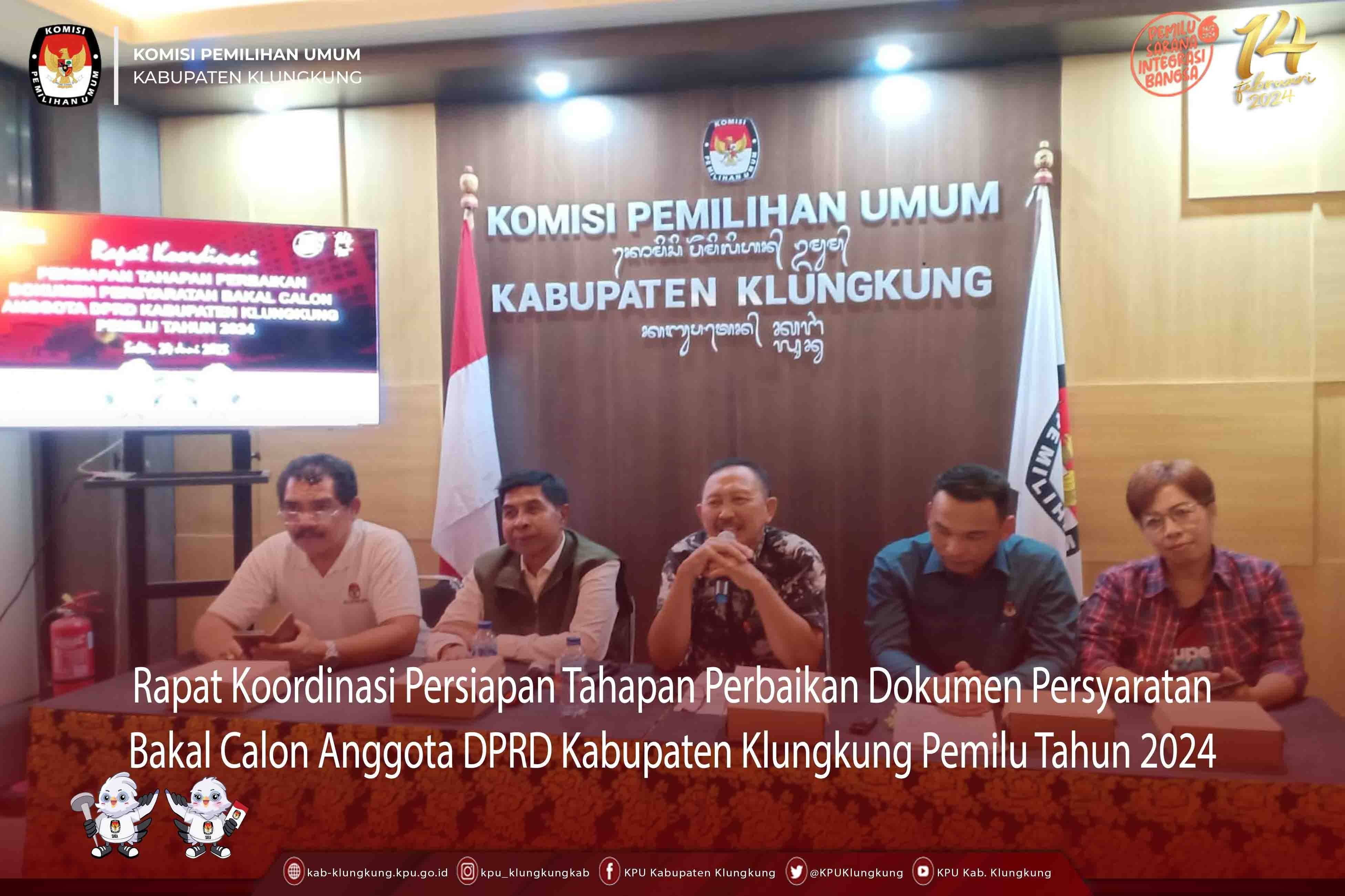 Rapat Koordinasi Persiapan Tahapan Perbaikan Dokumen Persyaratan Bakal Calon Anggota DPRD Kabupaten Klungkung Pemilu Tahun 2024