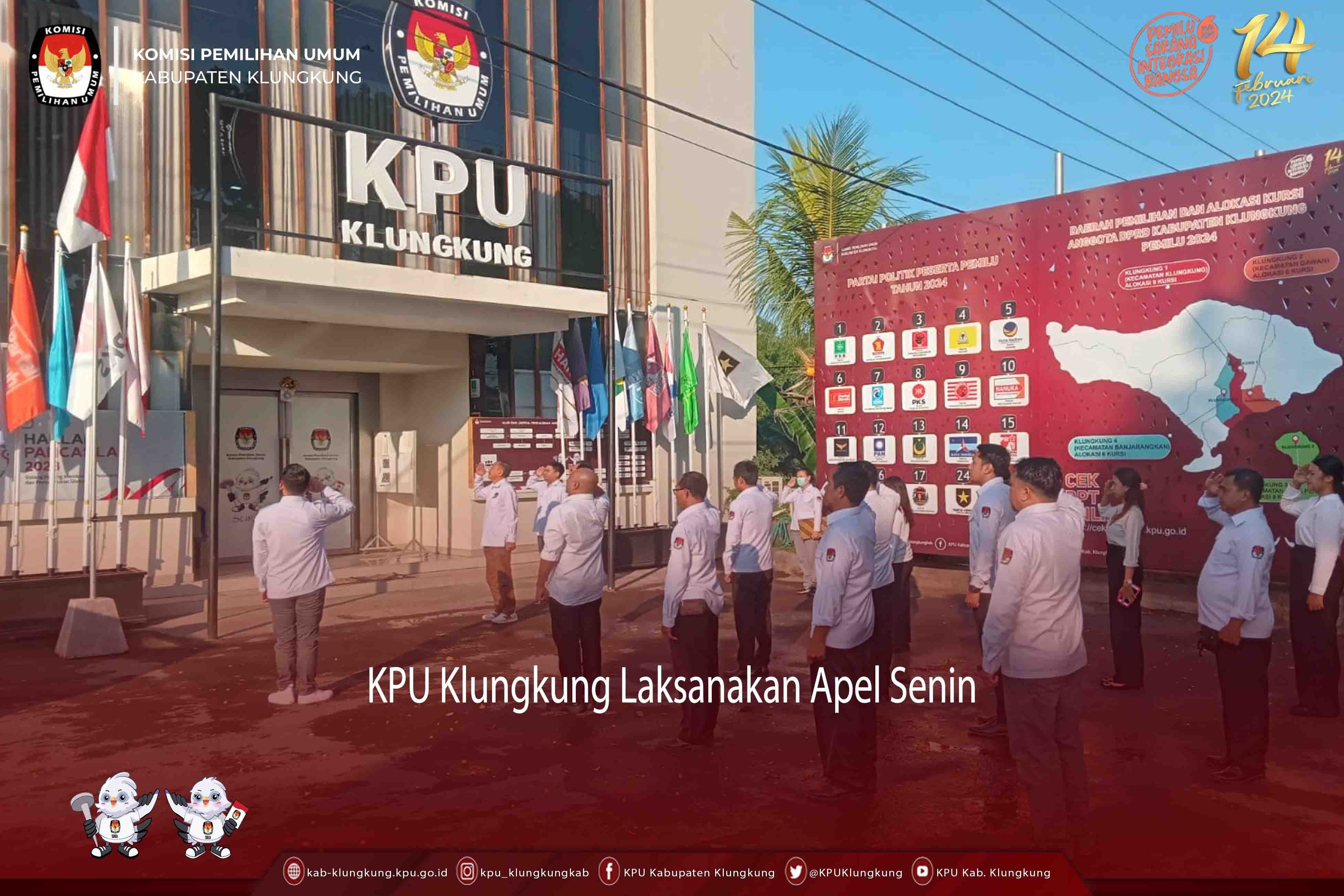 Turut hadir, Perwakilan Dari Kodim 1610 Klungkung, Polres Klungkung, Badan Kesbangpol Kabupaten Klungkung, RSUD Kabupaten Klungkung, Ketua/narahubung/LO partai politik peserta Pemilu 2024, serta jajaran pejabat struktural dan jajaran Sekretariat.