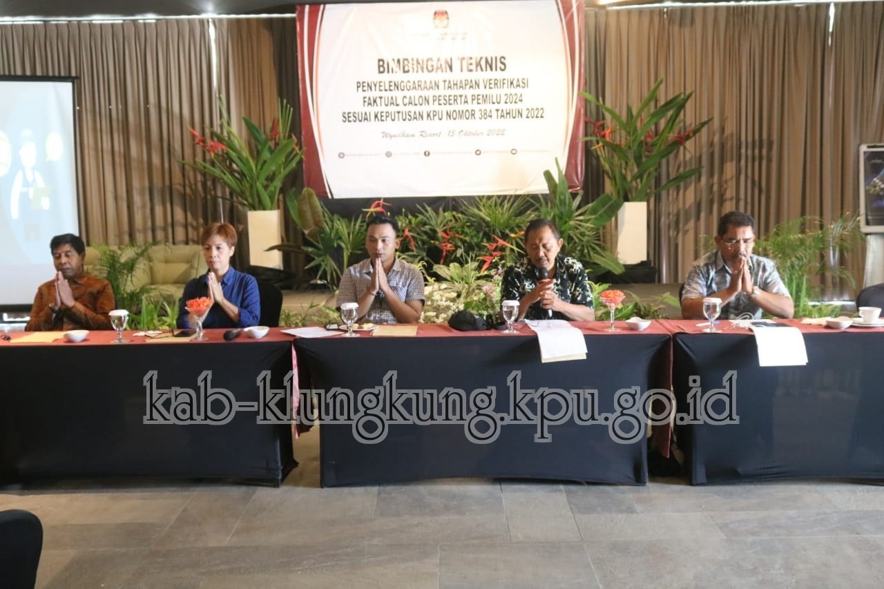 #TemanPemilih, kamis (13/10) KPU Kabupaten Klungkung melaksanakan Focus Group Discussion (FGD) Penyelenggaraan Tahapan Verifikasi Faktual (Verfak) Calon Peserta Pemilu 2024 sesuai Keputusan KPU Nomor 384 Tahun 2022 di Wyndham Tamansari Jivva Resort Bali yang dibuka Plh Ketua KPU Kabupaten Klungkung Ida Bagus Nyoman Barwata.