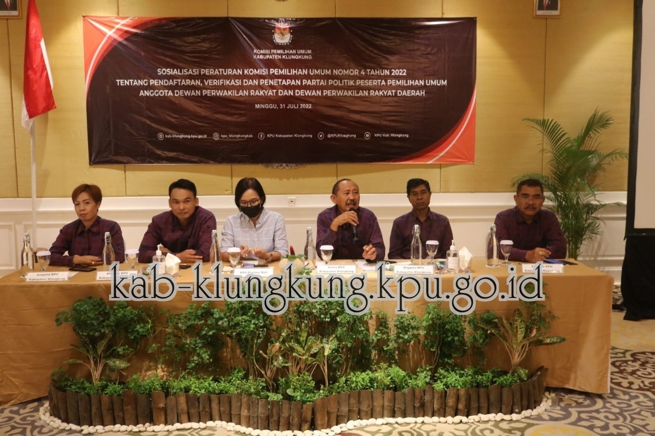 #TemanPemilih, Ketua KPU Kabupaten Klungkung I Gusti Lanang Mega Saskara, Anggota KPU Kabupaten Klungkung Ida Bagus Nyoman Barwata, Sang Ayu Mudiasih, I Gede Suka Astreawan, I Wayan Sumerta serta Sekretaris I Putu Gde Eka Swambara mengikuti Sosialisasi Tahapan Pendaftaran dan Verifikasi Partai Politik yang diselenggarakan KPU Provinsi Bali di Hotel Mercure Bali Sanur Resort, sabtu (30/7).