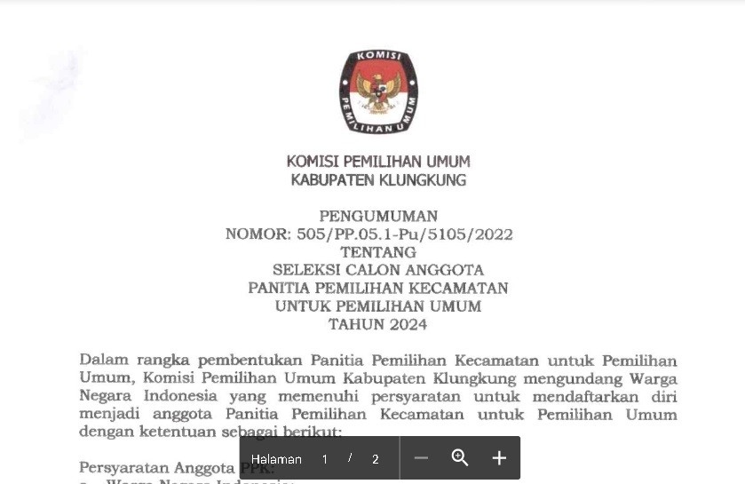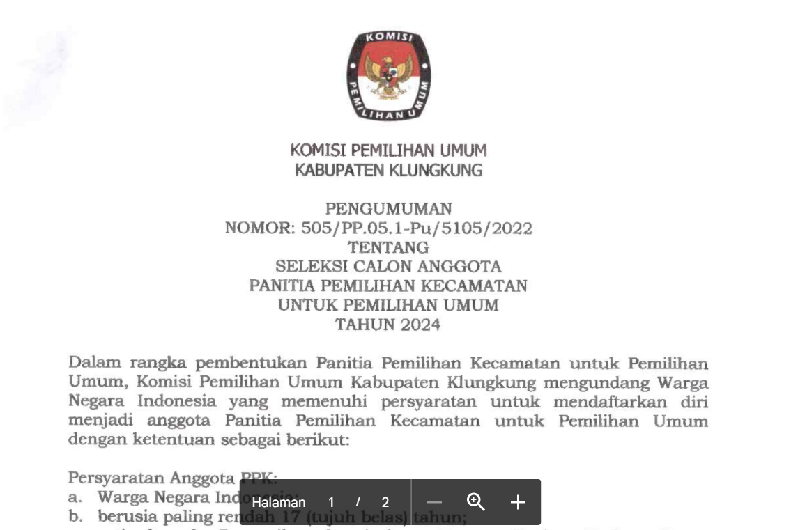 Dokumen seleksi badan ad hoc Klungkung dapat diunduh disini