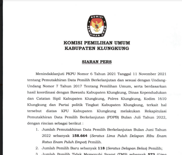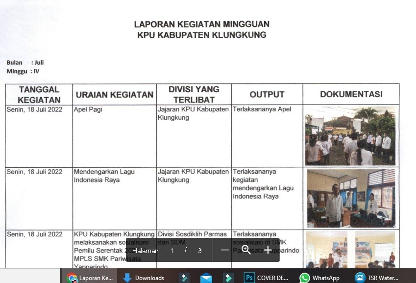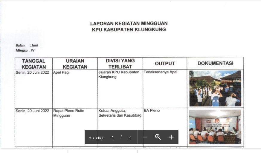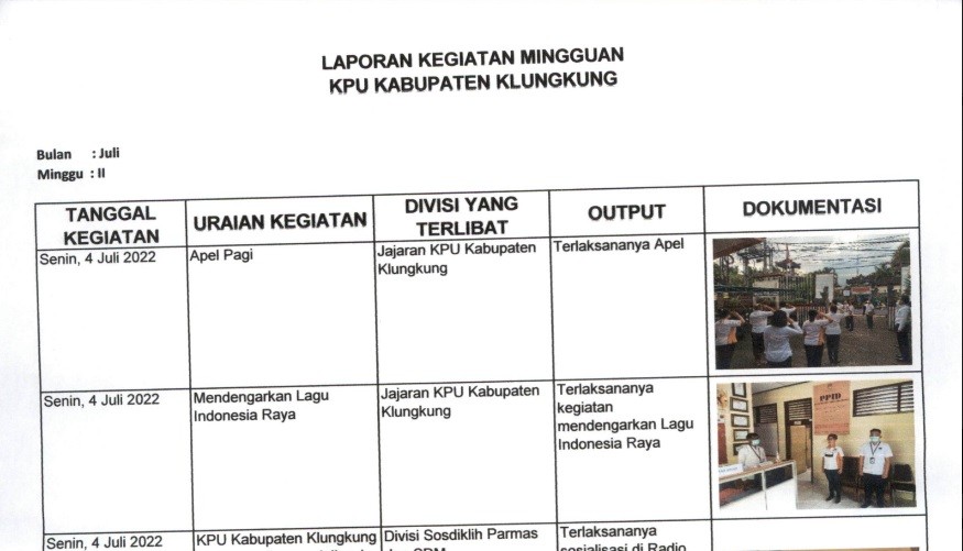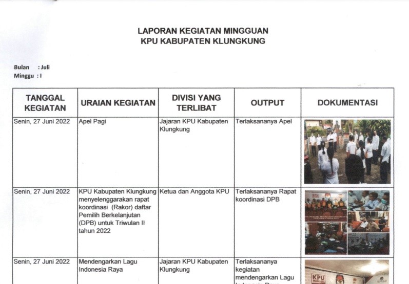 Laporan Kegiatan KPU Klungkung minggu ke 4 bulan juli tahun 2022 Sabtu, 30 Juli 2022 00:00 32 Laporan Kegiatan KPU Klungkung minggu ke 4 bulan juli tahun 2022 dapat diunduh disini Baca Selengkapnya