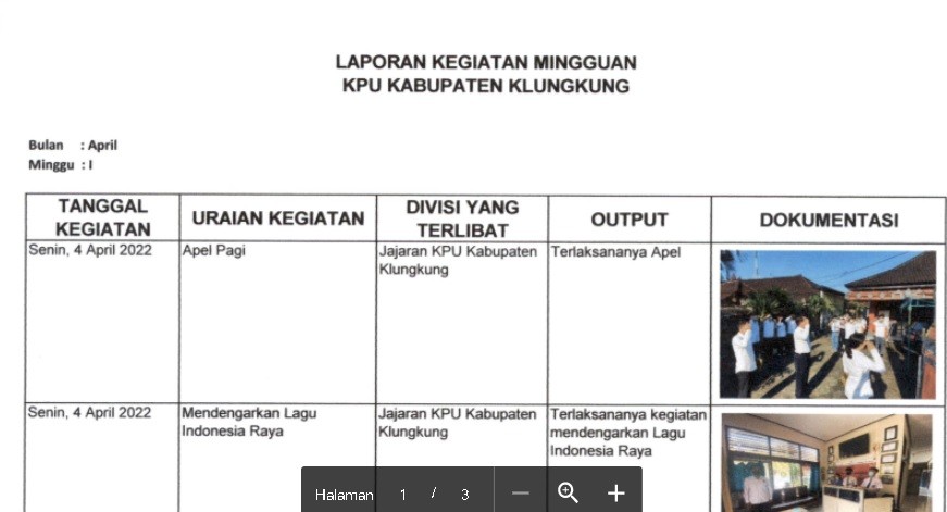 Laporan Kegiatan KPU Klungkung Minggu Pertama Bulan April Kamis, 14 April 2022 00:00 39 Laporan Kegiatan KPU Klungkung Minggu Pertama Bulan April dapat diunduh disini Baca Selengkapnya
