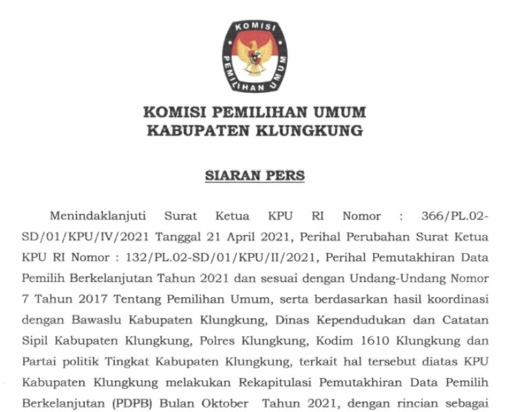 Pengumuman daftar pemilih perubahan bulan oktober 2021 Senin, 01 November 2021 00:00 660 Pengumuman daftar pemilih perubahan bulan oktober 2021 dapat didownload disini Baca Selengkapnya