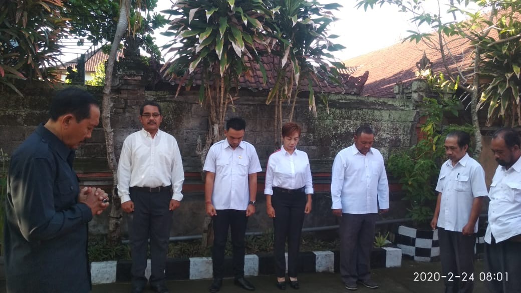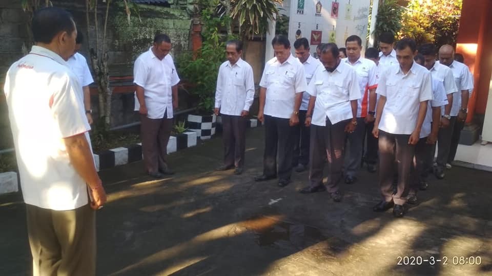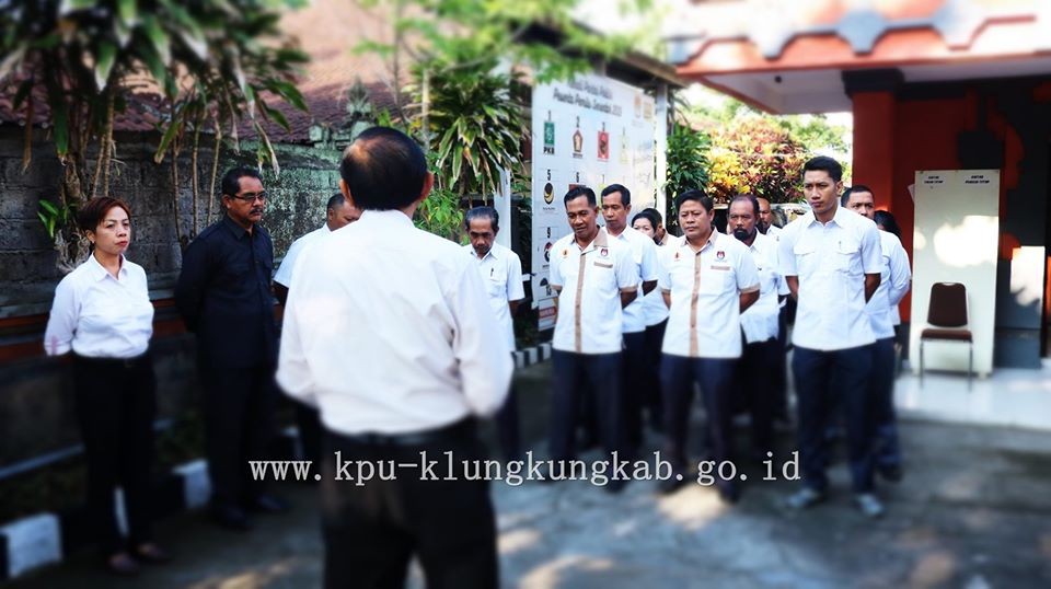 Semarapura, kpu-klungkungkab.go.id - Ucapan Hari Raya Galungan dan Kuningan disampaikan Ketua Komisi Pemilihan Umum Kabupaten Klungkung saat Apel Pagi Senin 2 Maret 2020, di Lapangan Depan Kantor setempat kepada seluruh jajaran penyelenggara Pemilu dan masyarakat yang merayakannya. Dalam kesempatan tersebut Ketua Komisi Pemilihan Umum Kabupaten Klungkung I Gusti Lanang Mega Saskara ini juga memberikan semangat kepada seluruh jajaran untuk melaksanakan tugas walaupun dihimpit banyak hari raya. Selain itu pihaknya berharap kepada semua Komisioner dan Sekretariat agar memberikan support dan menimba ilmu kepada Komisi Pemilihan Umum Kabupaten/Kota yang menyelenggarakan Pemilihan Serentak di tahun 2020 seperti Karangasem, Bangli, Denpasar, Badung, Tabanan, dan Jembrana walau dalam keterbatasan anggaran. Selain itu dirinya juga memberikan wejangan agar selalu menjaga kekompakan dan disiplin dalam kehadiran maupun bertugas. Apel yang diikuti oleh seluruh jajaran Komisi Pemilihan Umum Kabupaten Klungkung diisi dengan doa bersama dan amanat Pembina Apel yakni Ketua Komisi Pemilihan Umum sendiri. (putras).