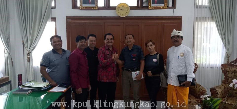 Semarapura, kpu-klungkungkab.go.id - Jalin hubungan yang baik dengan Pemerintah Daerah Komisi Pemilihan Umum Kabupaten Klungkung walapun tidak dalam penyelenggaraan Pemilihan Kepala Daerah .maupun Pemilu Jumat 3/12/2020, temui Sekretaris Daerah. Bertempat di ruang Sekda Kabupaten Klungkung Ketua KPU Klungkung beserta Anggota dan Sekretaris bertemu untuk mengucapkan terimakasih atas dukungan Pemda dalam Pemilu maupun Pemilihan serta untuk menyampaikan program kegiatan kerjasama dengan Pemkab melalui Badan Kesbangpol. Ketua KPU Klungkung I Gusti Lanang Mega Saskara menyampaikan niat untuk bekerjasama dengan Pemkab melalui Badan Kesbangpol. Sekda Kabupaten Klungkung I Gede Winastra mengucapkan apresiasi atas keberhasilan Pemilu dan Pulkada serta kerjasama yang baik antara Pemkab dan penyelenggara Pemilu/Pemilihan dan sangat berterimkasih atas kunjungan ini dan kedepannya bisa saling bekerjasama. Untuk kegiatan kedepannya pihaknya akan selalu mengintruksikan jajaran baik Badan Kesbang dan yang lainnya untuk maksimal mendukung program demokrasi yang dilaksanakan KPU Kabupaten Klungkujg. Sesi pertemuan diakhiri dengan foto bersama dan bercengkrama disela sela kesibukan Sekda Klungkung di awal tahun ini. (putras)