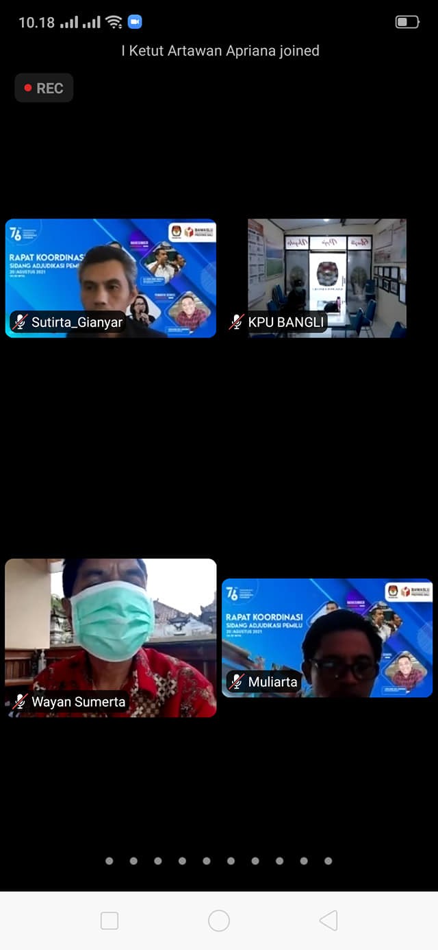 Semarapura, Komisioner, Sekretaris, Kasubag Hukum KPU Kabupaten Klungkung Jumat (20/8/2021) ikuti Sosialisasi antisipasi Sengketa Ajudifikasi Pemilu melalui media daring zoom meeting. Sebagai Narasumber Divisi Hukum dan Pengawasan KPU Provinsi Bali Anak Agung Raka Nakula dan Komisioner Bawaslu Bali Wirka. Secara bergantian Narasumber menyampaikan mengenai pengertian sengketa ajudifikasi, tatacara pengajuan dan penyelesaiannya. Selain itu juga dibahas mengenai pelanggaran administrasi yang bisa diajukan yang terdiri dari diawali penyampaian laporan, pokok pokok laporan, dan jawaban. Pelaporan ini berproses seperti pembuktian yang terdiri dari barang bukti seperti surat/tulisan, Keterangan Saksi, Petunjuk, Keterangan Pelapor dan Terlapor, bukti elektronik dan ketrangan ahli. Rapat yang dihadiri oleh Bawaslu Kabupaten/Kota ini diakhiri dengan diskusi. (putras)