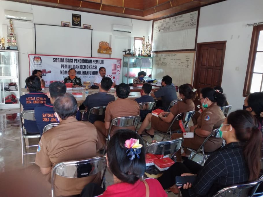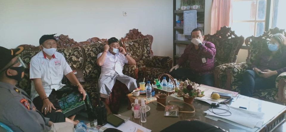 Semarapura, kpu-klungkungkab.go.id - Pengabdian tiada batas untuk Negara terus tumbuh berkembang di jiwa abdi masyarakat walaupun dimasa pandemi Covid-19 saat ini. Untuk memberikan penghargaan kepada PNS yang telah mengabdikan tugas di KPU Kabupaten Klungkung sesuai petunjuk dari KPU RI, KPU Kabupaten Klungkung berikan penghargaan kepada lima PNS berprestasi dimasing masing sub bagian dan Kepala Sub Bagian. Melalui Keputusan Sekretaris KPU Kabupaten Klungkung ditetapkan Kasubag Berprestasi Ida Bagus Made Weda dengan jabatan Kasubag Keuangan Umum dan Logistik, staf di Sub Bagian Keuangan Umum dan Logistik Kardono, yang telah memasuki masa pensiun, Staf Sub Bagian Program dan Data Cokorda Rama Surya Nugraha, Staf Sub Bagian Teknis dan Hupmas I Nyoman Budiastika, Staf Sub Bagian Hukum Ni Nyoman Putri Rusini. Piagam pemghargaan dan bingkisan diserahkan oleh masing masing Komisioner dimulai dari Ida Bagus Nyoman Barwata, Gde Suka Astreawan, Sang Ayu Mudiasih dan I Wayan Sumerta. Dalam kesempatan tersebut Sekretaris KPU Kabupaten Klungkung Wayan Putra Suijana menyampaikan bahwa penghargaan ini menjadi tauladan bagi seluruh jajaran untuk meningkatkan prestasi kerja serta mempertahankan disiplin walaupun saat ini sedang ada Pandemi Covid-19. Dan kedepannya semoga bisa lebih meningakatkan kinerja demi penyelenggaraan Pemilu maupun Pilkada. (putras)